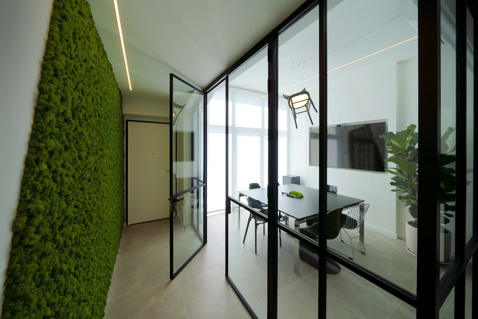 Sustainable environment, designed according to the guidelines of green architecture, is powered by energy from renewable sources and furnished with stabilized lichen for an unmistakable style and advantages in acoustic and environmental terms.